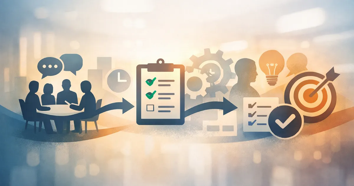 会議で話し合っただけで終わると、分かったつもりでも実際には何も動かないことがあります。そこで、「次に誰が何をするか」を明確にするために使われるのがネクストアクションです。タスクと似ていますが、ネクストアクションのほうが「この会議のあと、まず何を動かすか」という直後の一歩に焦点が当たりやすい言葉です。