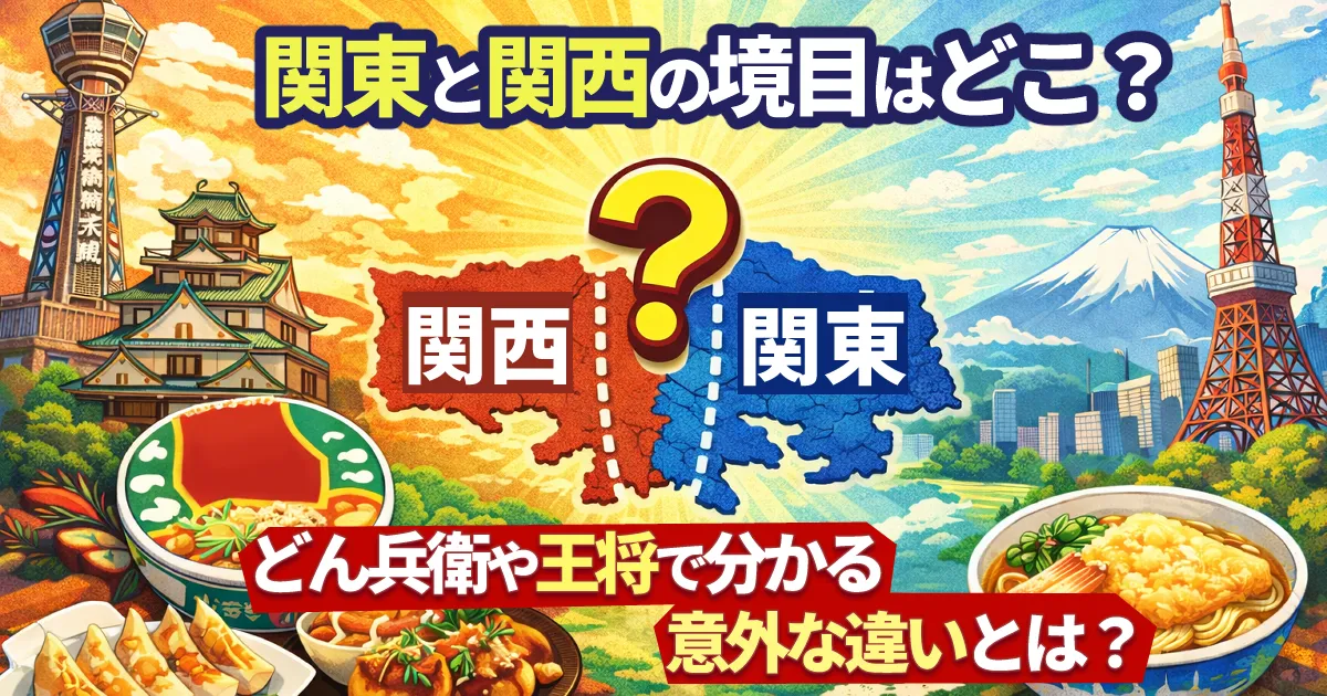 どん兵衛のだしの違いや、餃子の王将のメニュー構成など、身近な例を通して、関東と関西の境目にまつわる雑学を分かりやすく解説します。