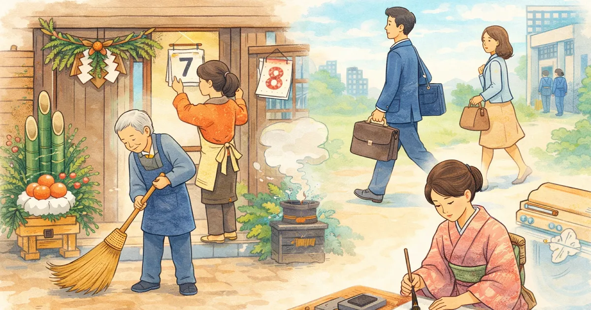 1月7日の七草粥で正月の食生活を整え、翌日から事始めとする流れは、体調や生活リズムの面でも理にかなっています。昔の日本では、暦や行事を基準に無理のない生活の切り替えが行われており、その知恵が事始めという習慣に表れています。