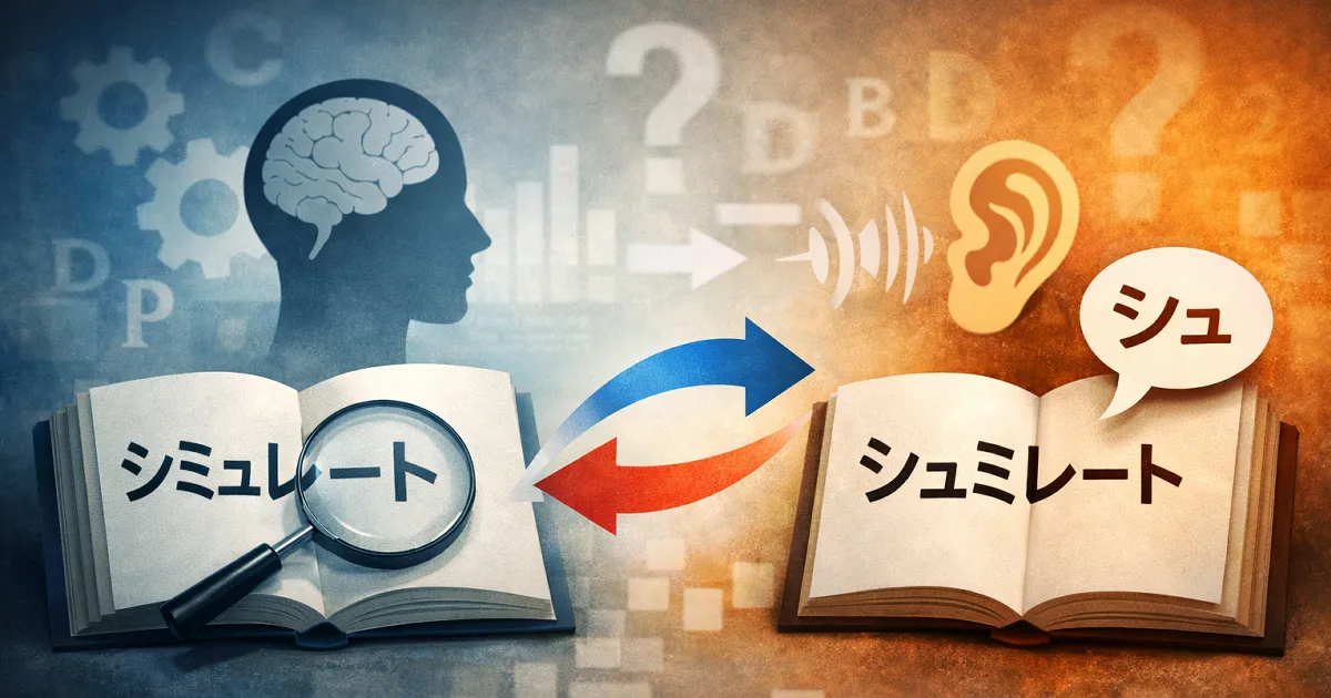 シミュレートをシュミレートと呼んでしまう背景には、音位転換という自然な言語現象があります。