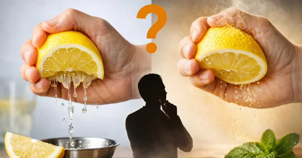 レモンはどう絞るのが正解?皮を下に向ける理由とは