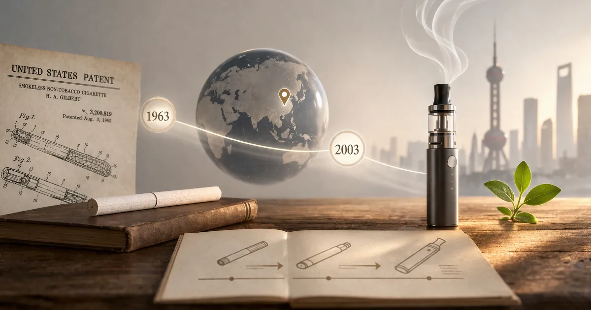 ただ、この話には前史があります。電子タバコは2003年に突然ゼロから生まれたというより、もっと前にあった着想を、現代的な形へまとめ直した発明 と見るほうがわかりやすいテーマです。そのため、発明史をきれいに追うなら、原型の発想 と 現代型としての誕生 を分けて考えるのが大切です。