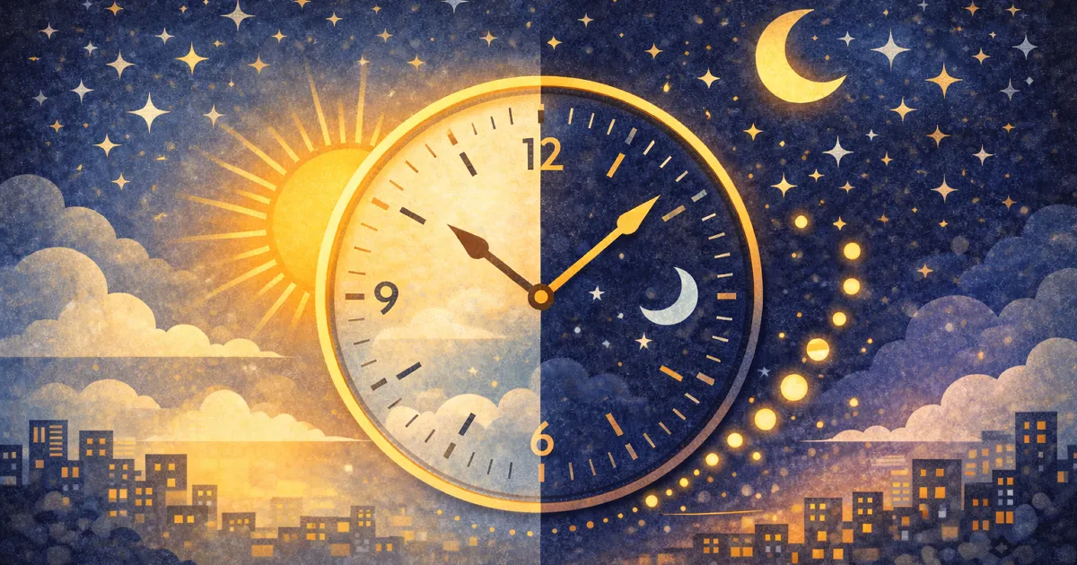 体内時計は光を手がかりに一日のリズムを整え、夜になると体を休息モードへ切り替えます。